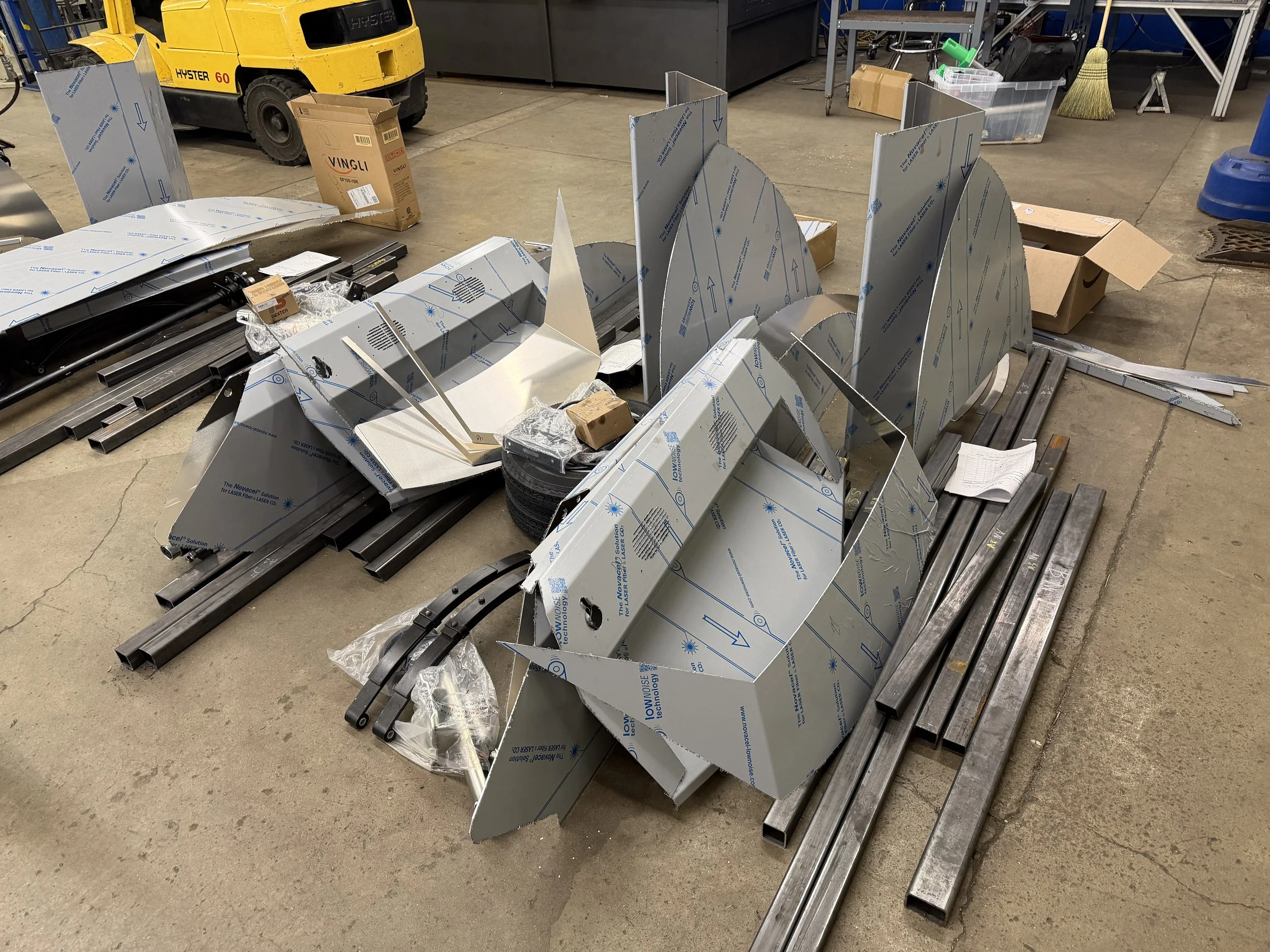 Junior River Racing Update 1/30/26 Jan 30 Written By Matt The parts have been manufactured and are ready for the students to start building! Pile of parts ready to be assembled Matt